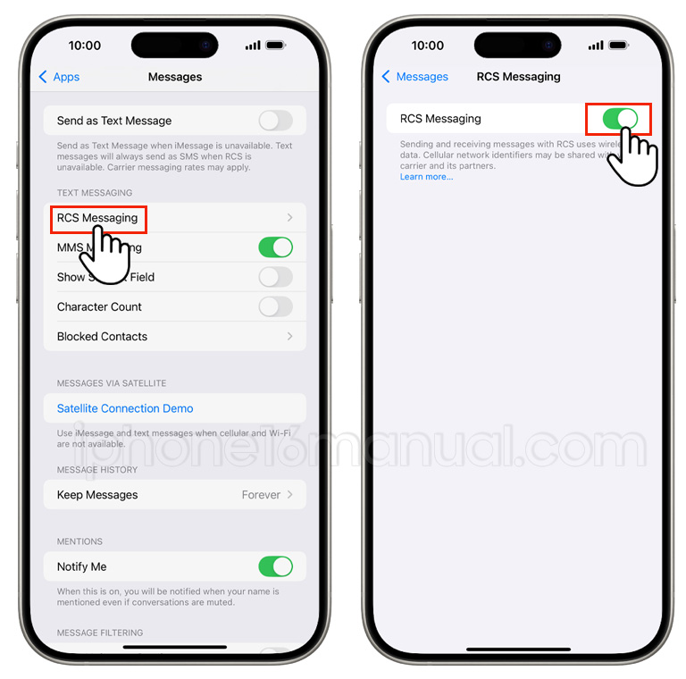 - Access RCS Settings: Within the Messages settings, look for the option labeled RCS Messaging. This option will only appear if your carrier supports RCS.